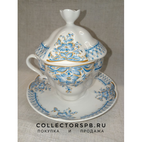 Чашка с крышкой и блюдцем, фарфор, ЛФЗ, СССР, посуда, сервировка стола,