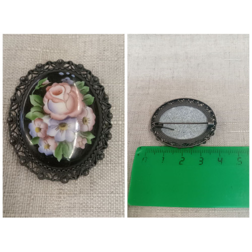 Брошь, брошка, Финифть, металл, скань, цветы, украшения, СССР,