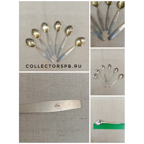 Чайные ложки 6 штук, мельхиор, посеребрение, позолота, СССР, советская прибалтика, Таллин,