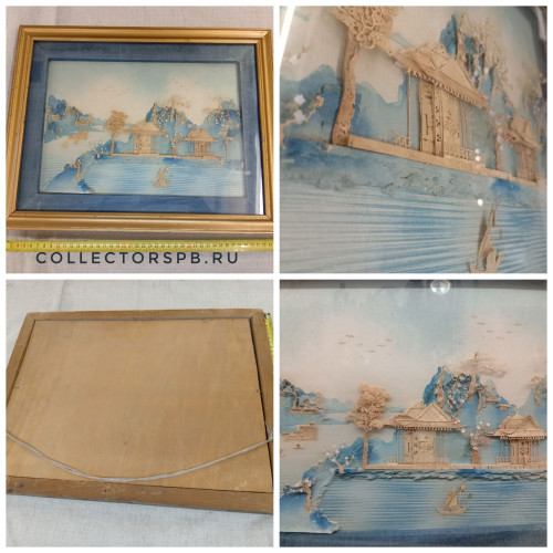 Картина, настенное панно, пробковое дерево, живопись, старый Китай, интерьер, пагода,