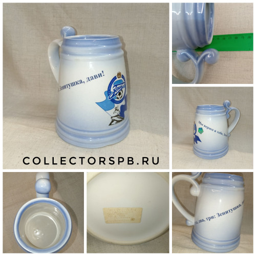 Кружка пивная, бокал, футбол, зенит, сине-бело-голубые, Футбольный клуб, атрибутика, подарки,