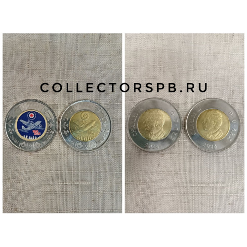 Монеты, 2 доллара, 2024, Канада, 100 лет военно-воздушным силам, нумизматика, деньги,