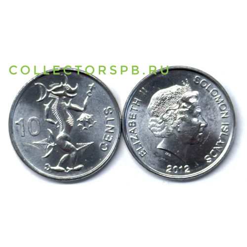 Монета, 10 центов, 2012, соломоновы острова, океания, нумизматика, бог моря,