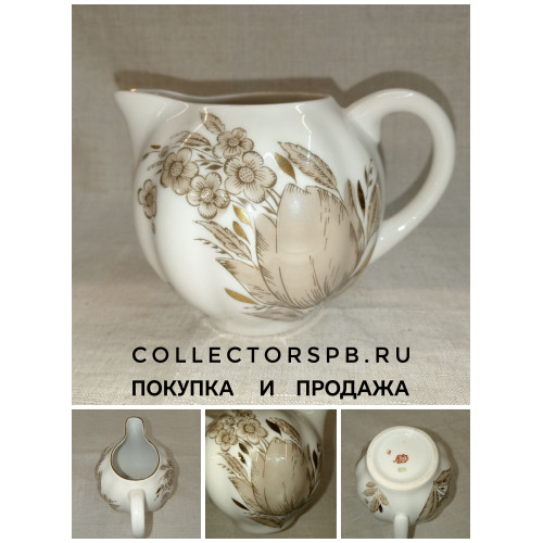 Сливочник, молочник из сервиза "Март". Фарфор ЛФЗ СССР. Деколь. Позолота. (07)
