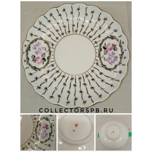 Сухарница, блюдо, тарелка из сервиза "Розовая роза". Фарфор ЛФЗ СССР. Роспись. Позолота (1).