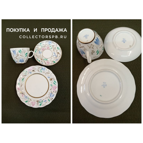 Кофейное трио, чашка, блюдце, пирожковая тарелка, Душистый горошек, фарфор, ЛФЗ, СССР,