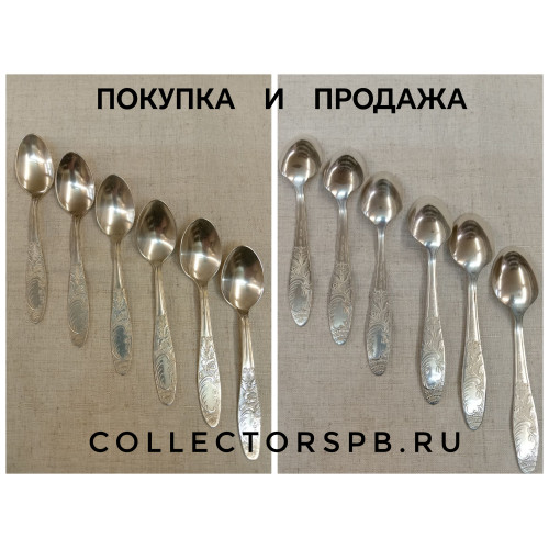 Чайные ложки 6 штук, мельхиор, посеребрение, мнц, СССР, столовые приборы,