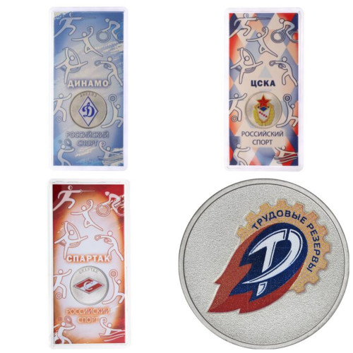 Монеты 25 рублей 2025 года. Российский спорт. Футбольные клубы. Спартак, трудовые резервы, Динамо, ЦСКА. (20)